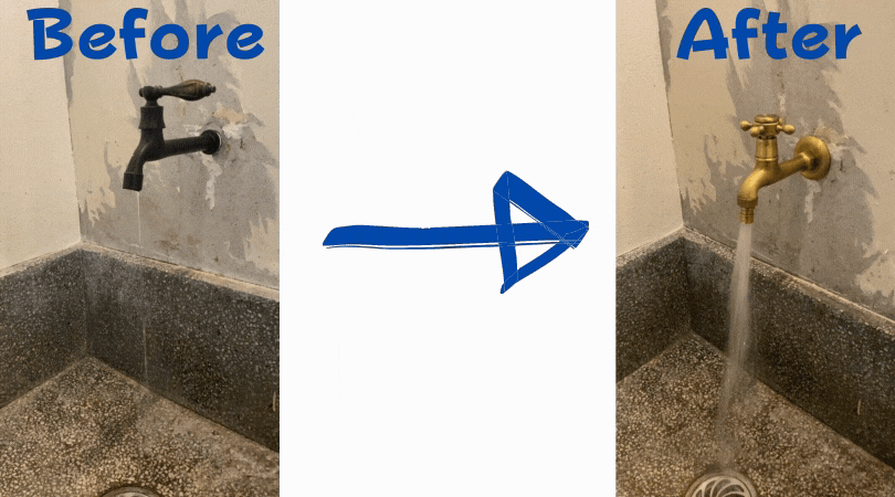 これです。もう湯切りというか湯切りの終盤ほどの水量ですよ。洗い物は超絶時間かかるし、何よりお客様が手を洗う時のリアクションが、、もう三度見くらいしている状況なので、これはもうダメだと。